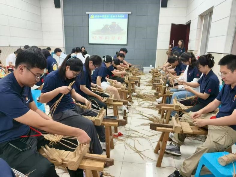 草鞋實踐課上,實踐團成員們埋頭苦干