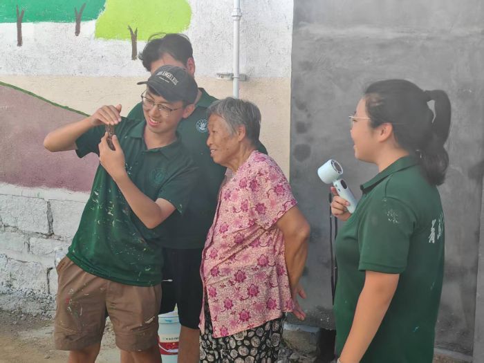 圖為隊(duì)員們向村民展示墻繪AR技術(shù)。魏佳 供圖