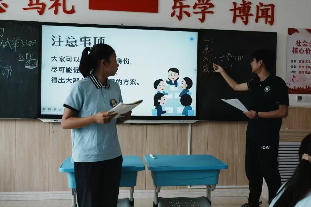 身份公開促使立場轉變。第三組在爭吵后達成共識:基礎量每人1塊,剩余3塊獎勵關鍵環節貢獻者。“我們吵到拍桌子,”學生李昊軒笑道,“但最后發現,讓組里80%的人滿意比獨贏更重要。”曹鶴松老師點出核心:“協商不是消滅分歧,而是尋找最大利益同心圓。”