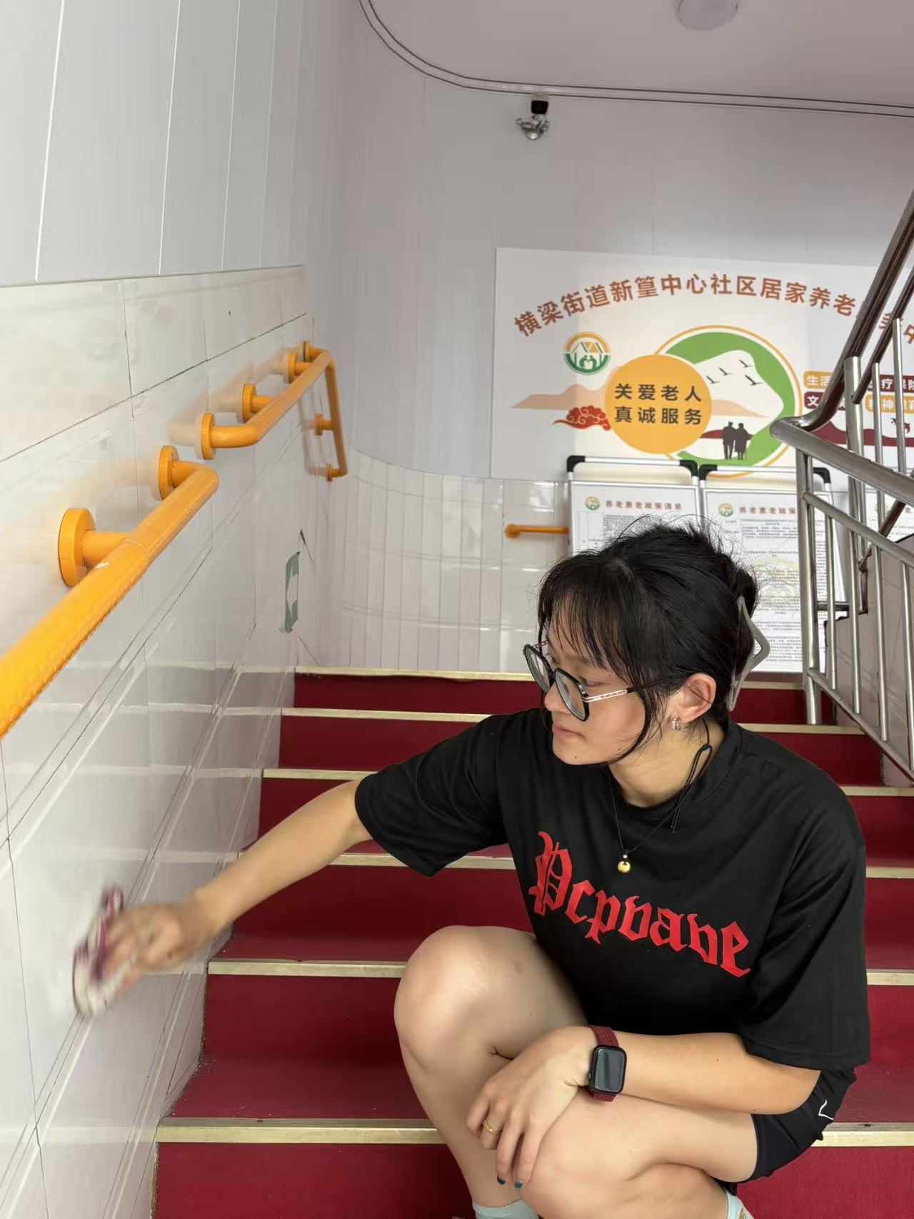 實踐中,學生們首先化身“環境守護者”,以“勞”為筆改善社區環境。烈日下的汗水、反復擦拭的欄桿,不僅讓社區環境變得整潔清爽,更成為錘煉意志的“磨刀石”。有人從起初的“怕臟怕累”,逐漸主動承擔重活;有人在重復勞作中領悟“小事見擔當”的深意,用行動詮釋“以勞樹德”的真諦。