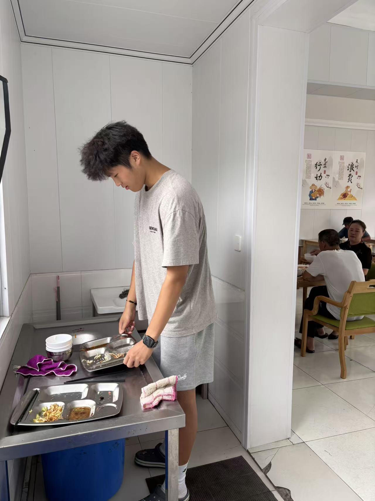 隨后,成員們轉型為“銀發暖心人”,助力社區銀發助餐服務。他們提前抵達社區食堂,協助工作人員清洗食材、分裝餐食,仔細核對老人的訂餐信息。送餐環節中,大家拎著溫熱的餐盒,挨家挨戶送到行動不便的老人手中,還會耐心詢問老人的飲食需求,陪老人簡單聊天解悶。從生疏地打包餐食,到熟練地與老人溝通,學生們不僅用熱氣騰騰的飯菜傳遞溫暖,更在與長輩的互動中學會傾聽與關懷,實現“以勞增智、以愛暖心”。有同學說:“原來志愿服務不只是完成任務,更是用真心連接社區、用行動傳遞善意的課堂。”