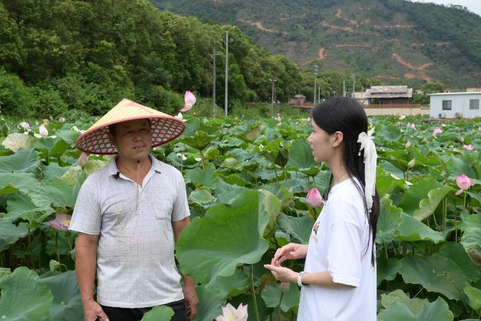 語言溝通的順暢度曾是蓮花鎮產業發展需要面對的課題,推普行動正為鄉土產業拓展更廣闊的空間。返鄉大學生李同學在采訪中提到,講好普通話能幫助養殖戶更好對接供銷商。在富廊村,隊員編創的“三句半”成為溝通龜業的“金橋”,助力產業信息傳遞;在分界村,來自湖北的荷花種植戶用親身經歷講述創業故事;在羅村,隊員走訪的蘭花基地,清晰的溝通讓產業交流更高效。從龜業發展到蘭花產業交流,普通話如同橋梁,讓扎根于鄉土方言的產業,得以走向更寬廣的市場。