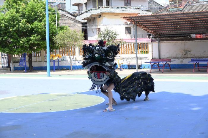 圖為村民們為推普活動帶來的驚喜,團隊體驗當地的特色——舞獅文化
