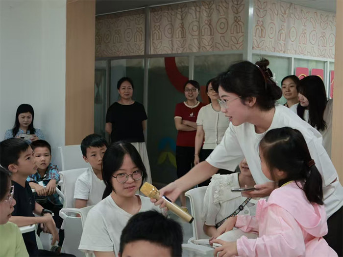 孩子們在志愿者的指導下,用英語描述吉祥物的特征,進一步加深了對家鄉文化的認同感。