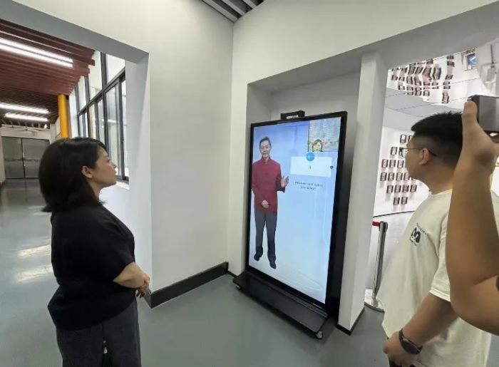 團隊體驗了VR楚劇表演、AI非遺數字人互動等項目。歐院長指出:“通過動作捕捉和3D建模,我們將非遺技藝轉化為可交互的數字化資源,打破了空間、時間的局限性,總共分為七個展區,通過互動提問以AI數字人的方式為體驗者帶來針對性的介紹,使講解更具溫度。在未來,學校計劃構建元宇宙非遺展館,從而突破地域限制,擴大傳播覆蓋面。”