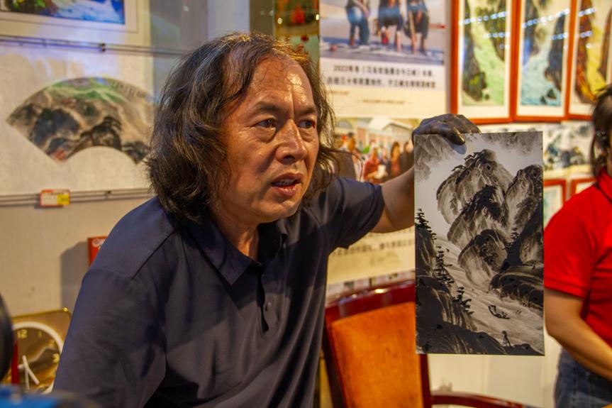 當年輕的隊員們站在壇子嶺上,看暮色中的大壩與墨色暈染的山水在習永欽的畫作里和諧共生,他們深刻理解了習永欽所言:“守住根,也要讓根須扎得更深。”這次逆向追尋的旅程,不僅讓團隊收獲了豐富的非遺調研成果,更在他們心中烙下一個信念:守護如三峽指墨畫這般珍貴的文化遺產,需要后來者接過那枚無形的“指甲”,帶著同樣的虔誠與創新精神,在時代的巨幅長卷上,奮力刻下屬于這個世紀的不朽印記。荊楚文脈的延續,就在這每一次指尖與墨痕的觸碰中,奔涌向前。