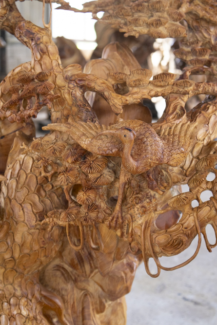 會同木雕的榮光可追溯至明清,彼時工匠足跡遍布湘西,千禧年前后更迎來高峰,縣宗教用品工藝廠聚集六七十名技術骨干,業務輻射黔渝鄂。16歲拜師、深耕技藝二十余載的向昌平,將傳統木雕與根雕融會貫通,獨創“扁雕”技法,能在不足1公分的薄木上刻出立體層次,令人稱奇。