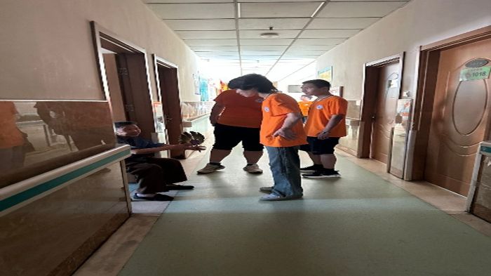 在工作人員的帶領下,實踐隊分成若干小組,分別前往不同樓層的老人宿舍。一進入宿舍區,同學們便感受到了濃厚的生活氣息。老人們有的坐在走廊的椅子上曬太陽,有的在房間里悠閑地看著電視。看到同學們的到來,老人們的眼中瞬間亮起了光芒,臉上露出了慈祥的笑容。