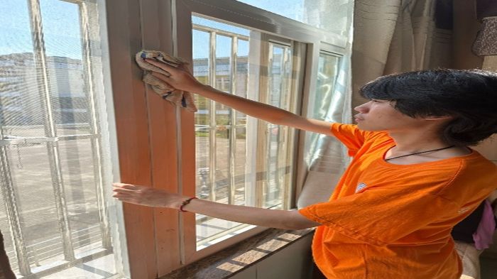 在擦玻璃的過程中,同學們還發現了一些小細節。有的老人宿舍里擺放著許多照片,記錄著他們年輕時的美好時光;有的老人則在窗臺上種滿了綠植,為房間增添了一份生機與活力。這些小細節,都讓同學們更加了解老人們的內心世界,也讓大家更加堅定了為他們創造一個整潔、舒適生活環境的決心。