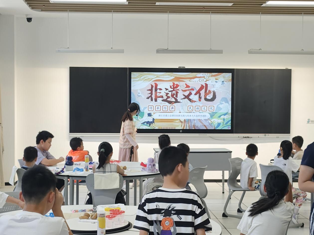 隨后,團隊將沿途收集的非遺文化體驗“寶藏”送進萬地愛心兒童福利院與蓮都區青少年宮。成員分組設計了不同非遺技藝的體驗環節,包括:瑞安藍夾纈宣講與手繪帆布包活動、金石篆刻與趣味刻印章活動、縉云燒餅非遺文化創意課堂等,激發了孩子們對非遺的興趣,使其獲得沉浸式的非遺體驗。