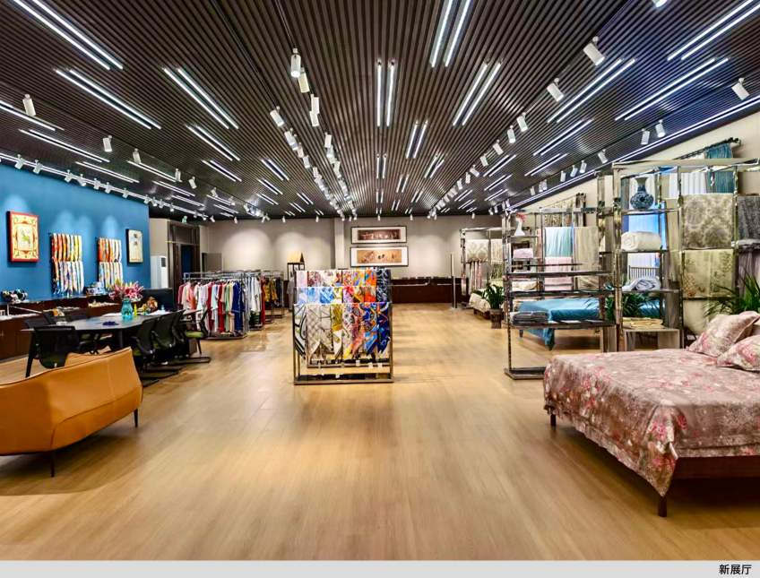 現代創新產品區則集中展示了大染坊的核心科技成果,時尚絲綢家紡、創意服飾等產品琳瑯滿目,包括寬幅真絲家紡面料、高色牢度“婚慶紅”系列、抗菌保健絲綢等創新產品。從嬰童絲綢床品的柔軟親膚,到潮流絲巾的繽紛設計,全方位展示了絲綢在現代生活中的多元應用。彰顯了企業在高端面料研發領域的領先地位。