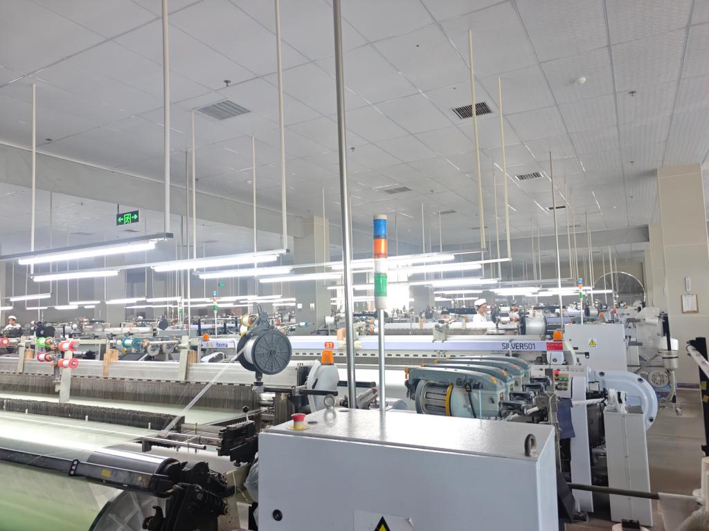 在紡絲車間的技術(shù)負(fù)責(zé)人的帶領(lǐng)下,實(shí)踐團(tuán)成員看到在寬幅劍桿織機(jī)紡絲區(qū),企業(yè)購進(jìn)的意大利進(jìn)口織造設(shè)備幅寬達(dá)3.6米,每分鐘投緯超過300次,配合電子提花系統(tǒng),可以精準(zhǔn)織造復(fù)雜圖案。同時(shí)實(shí)踐團(tuán)成員還注意到,通過物聯(lián)網(wǎng)技術(shù),每臺(tái)設(shè)備都接入了智能監(jiān)控系統(tǒng),實(shí)時(shí)采集運(yùn)行數(shù)據(jù)并進(jìn)行分析優(yōu)化。企業(yè)通過將傳統(tǒng)絲綢工藝與現(xiàn)代智能制造進(jìn)行結(jié)合,并采用數(shù)碼提花技術(shù)精準(zhǔn)還原傳統(tǒng)紋樣,向?qū)嵺`團(tuán)成員展示了傳統(tǒng)工藝如何在新時(shí)代煥發(fā)生機(jī)。