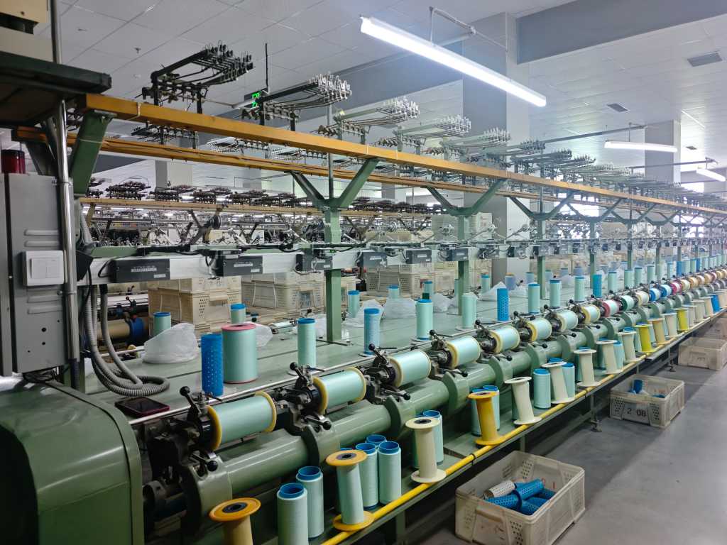 實踐團成員隨后觀察了第二工廠的織布工藝,深入了解了絲綢面料從絲線到成品的華麗蛻變過程。在寬幅劍桿織機生產區,織機幅寬可達3.6米,每分鐘投緯次數超過300次,是目前國內最先進的絲綢織造設備。與傳統織機相比,第二工廠的現代織造設備通過電子提花系統可以實現復雜圖案的精準織造,且生產效率提升了8-10倍。