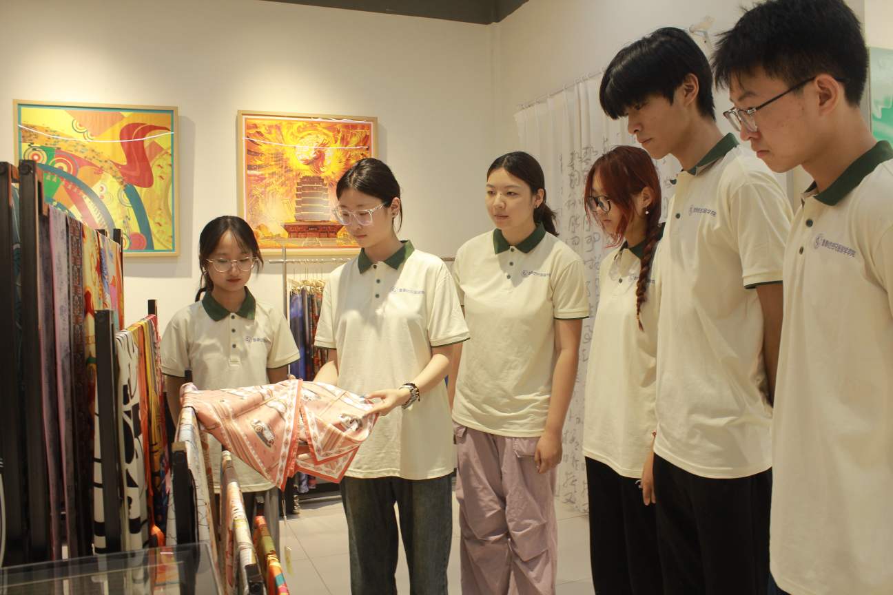 實(shí)踐團(tuán)成員在專業(yè)講解員引導(dǎo)下,詳細(xì)了解了各類絲綢產(chǎn)品的設(shè)計(jì)理念、工藝特點(diǎn)及市場(chǎng)定位。展廳負(fù)責(zé)人重點(diǎn)介紹了企業(yè)在絲綢文創(chuàng)開發(fā)方面的創(chuàng)新實(shí)踐,如將齊文化元素?cái)?shù)字化轉(zhuǎn)譯為絲巾圖案的"智繡"技術(shù),以及通過環(huán)保染色工藝降低生產(chǎn)能耗的"綠絲計(jì)劃"。同學(xué)們通過近距離觀察與觸摸,對(duì)絲綢材質(zhì)特性與文化價(jià)值有了更深刻的認(rèn)識(shí)。