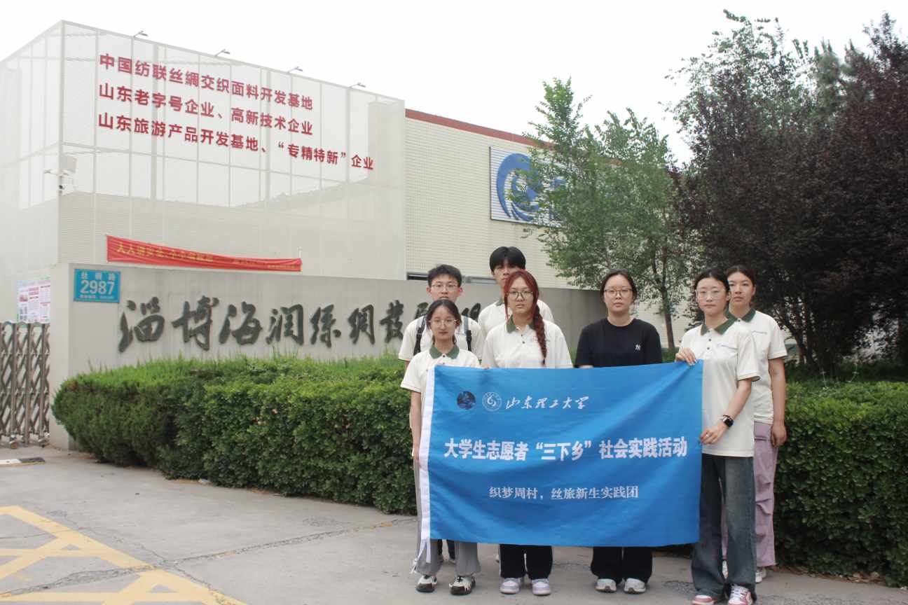 2025年7月24日,山東理工大學(xué)魯泰紡織服裝學(xué)院"織夢(mèng)山東,絲旅新生"社會(huì)實(shí)踐團(tuán)赴淄博海潤(rùn)絲綢文化展廳開展專題調(diào)研活動(dòng)。此次參觀是實(shí)踐團(tuán)了解絲綢文化創(chuàng)新應(yīng)用、探索傳統(tǒng)工藝現(xiàn)代表達(dá)的重要實(shí)踐。