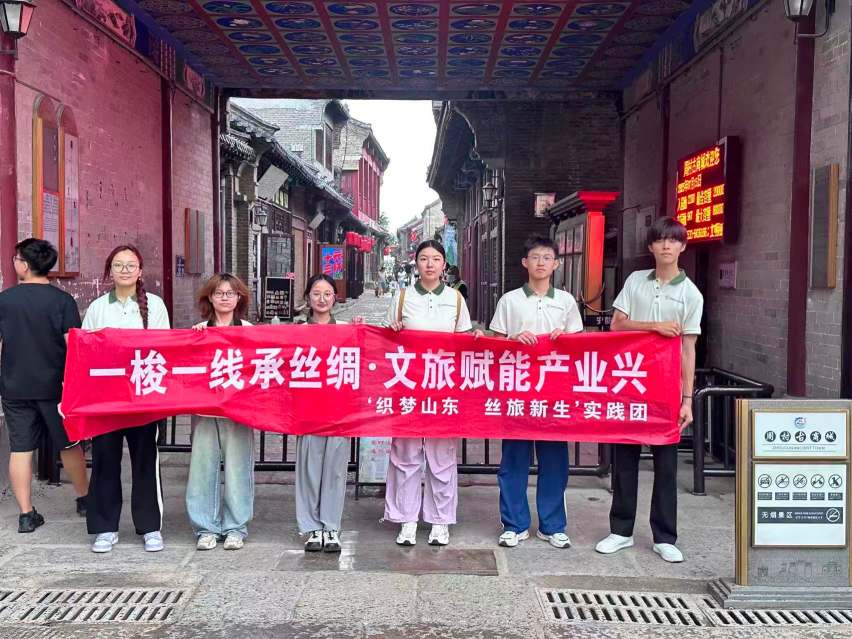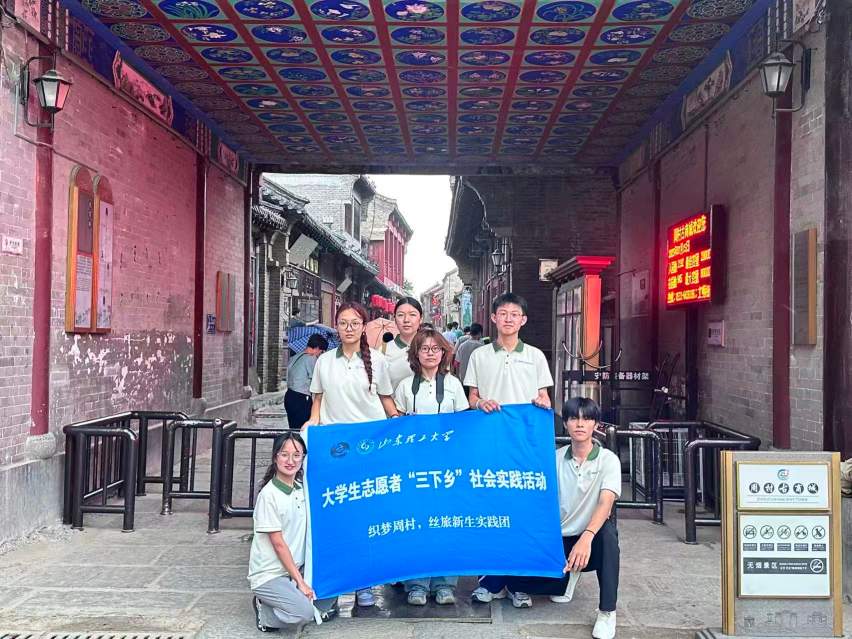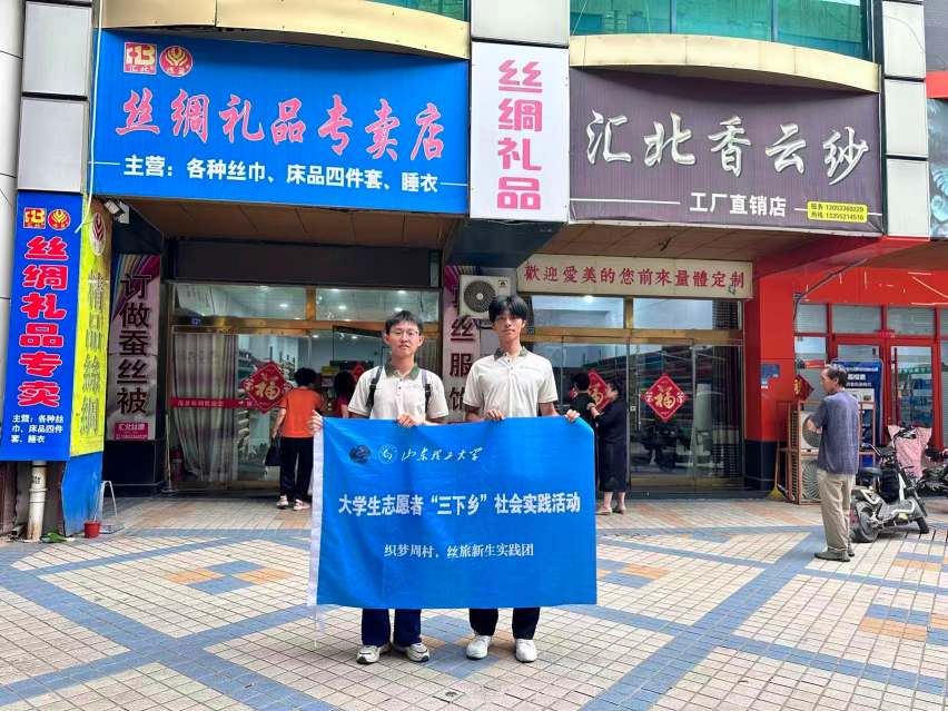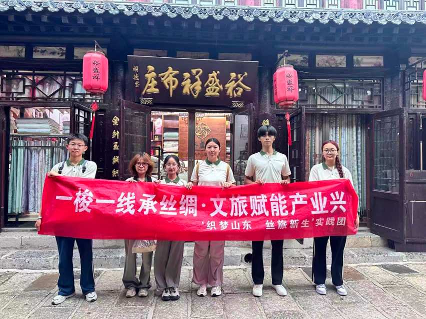 2025年7月27日,山東理工大學魯泰紡織服裝學院"織夢山東,絲旅新生"實踐團赴周村古商城開展絲綢產業專項調研活動,重點調研了古商城內絲綢店鋪的經營現狀與發展困境。