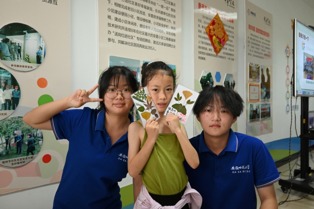 課堂最后,志愿者帶領孩子們動手制作簡易植物標本。他們精心挑選花葉,壓制、定位、粘貼,在卡紙上創(chuàng)作屬于自己的“植物名片”。一片片葉、一張張畫,匯聚童真的想象,也繪就人與自然的和諧圖景。