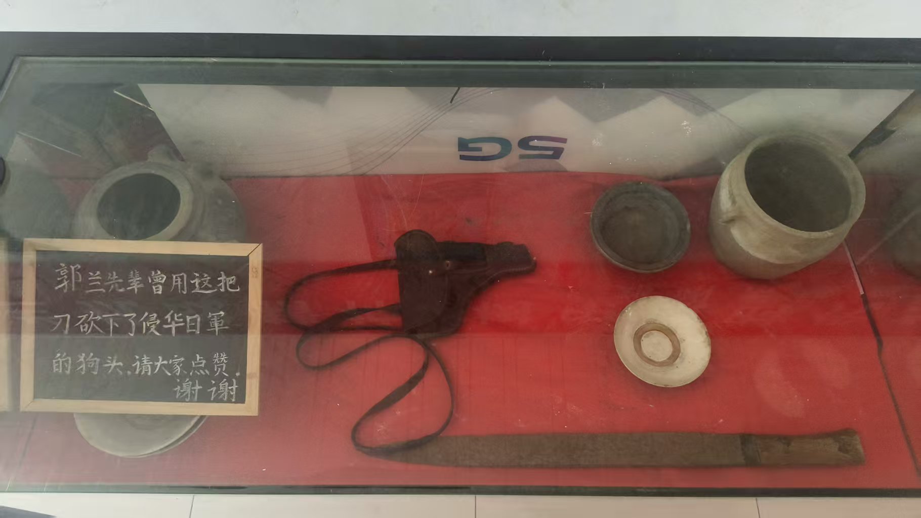 踏入紀念館,團隊成員們懷著崇敬的心情,認真觀看每一件展品、每一段文字介紹。館內陳列著郭蘭生前使用過的物品,如那盞曾在黑暗中為他照亮的煤油燈,仿佛在無聲訴說著往昔艱苦卓絕的革命歲月;還有那把木制手柄已泛出深褐色的匕首靜靜陳列在展柜中,刀刃雖因歲月侵蝕留下痕跡,但據館內介紹,這正是郭蘭同志生前所用,曾見證他斬殺侵華日軍的英勇時刻,刀柄上細微的磨損,仿佛還能讓人聯想到當年他緊握刀具、抗擊外敵的堅定姿態。