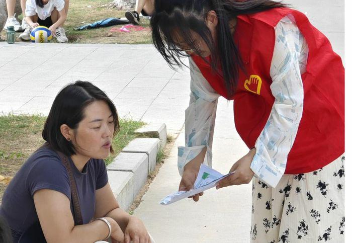深入公共空間,感知市民環保需求。小分隊走進商丘人民公園,開展“低碳節水”主題問卷調研與宣傳海報分發活動。問卷內容涵蓋環保常識、行為習慣及政策建議,旨在發現公眾認知盲區與宣傳痛點。同時,隊員們結合海報圖文,向市民生動講解低碳生活技巧,如“選用節能電器年省電費可觀”“農田滴灌節水降碳雙贏”等。活動中,隊員們還隨機采訪市民,傾聽他們對本地環保工作的評價與建議,記錄了許多一手觀點與鮮活案例。當一位張大爺準確分享其家庭垃圾分類方法時,小分隊隊長齊珂穎及時給予肯定:“您的行動,就是給子孫的環保榜樣!”