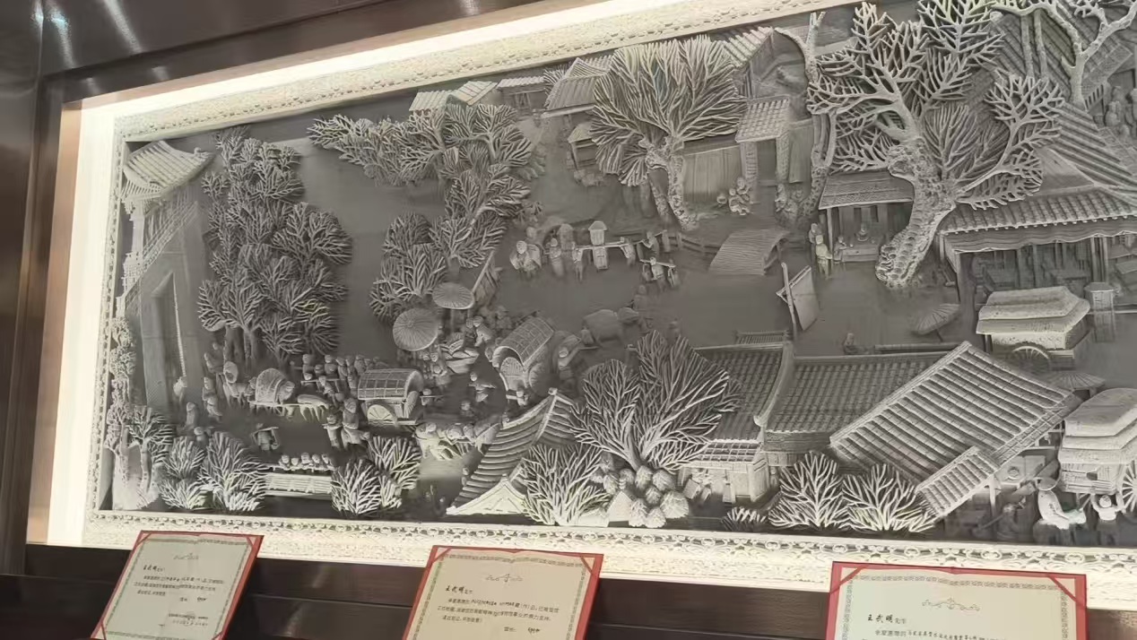 7月13日上午,我們奔赴臨夏縣青韻磚雕有限公司。在公司負責人白主任的熱情接待下,我們走進生產車間,近距離見證了現代磚雕從原料到成品的蛻變。白主任詳細介紹:“磚雕制作講究‘三分雕琢,七分天成’,但現代工藝也在不斷創新,讓傳統技藝更適配當代需求。”交流中,我們圍繞磚雕的設計創新、材料優化等問題與白主任深入探討,對現代磚雕的發展有了更清晰的認識。