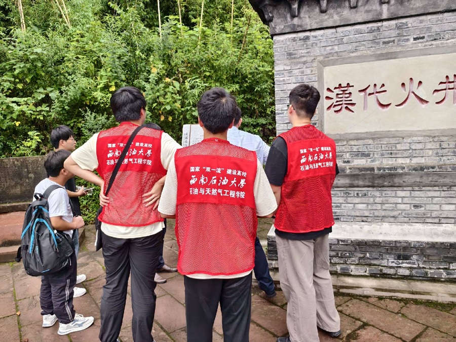 為傳承石油精神、踐行能源報國使命,西南石油大學石油與天然氣工程學院“向新而行,油育青苗”本-碩-博實踐隊于7月2日赴四川邛崍開展為期10天的沉浸式實踐學習。隊員們穿梭于古今能源開發現場——從世界最早開發利用天然氣的漢代臨邛火井到現代化集氣站,從紅軍長征能源保障歷史遺跡,到國內深層天然氣勘探重點井,在歷史與科技的碰撞中深化專業認知。