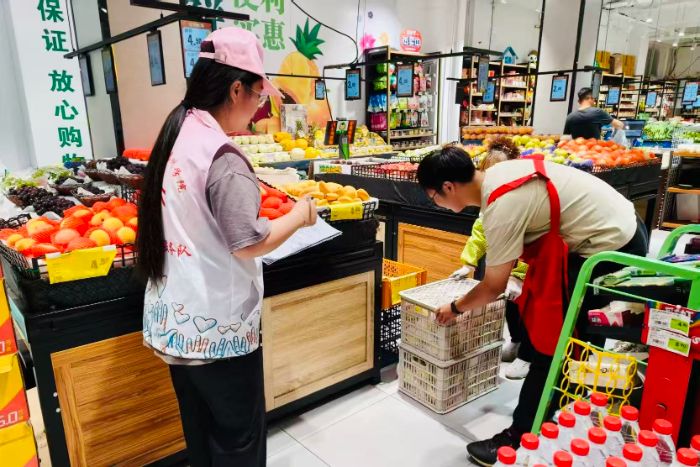 8月10日在U家連鎖超市調研期間,隊員們在了解農產品進貨、質檢、上架全流程——包括多元化采購策略、依托數據分析調貨、質檢體系運行等情況時,專門與超市工作人員就“民族知識在服務中的融入”進行交流。向其普及各民族消費習慣的共通與包容之處,建議在標準化管理中可適當融入民族團結元素;針對商品標簽信息完善問題,也結合“各民族平等享有清晰消費信息權”的角度提出參考思路。同時在關注電子支付普及及偏遠攤販數字化難題時,強調“各民族在發展中互幫互助,能共渡轉型難關”的理念。