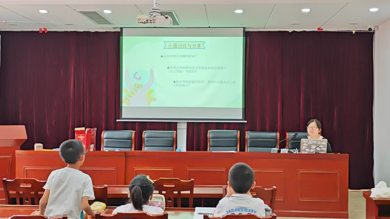 此次 AI 創(chuàng)新課緊扣青少年認(rèn)知特點(diǎn),以 趣味講解與互動(dòng)體驗(yàn)為核心形式。志愿者小老師先是通過(guò)動(dòng)畫(huà)短片,用通俗易懂的語(yǔ)言向孩子們介紹 AI 的基本概念,比如生活中常見(jiàn)的語(yǔ)音助手、智能推薦等;隨后展示了我國(guó)自主研發(fā)的 AI 技術(shù)成果,結(jié)合簡(jiǎn)單案例講解 AI 如何解決實(shí)際問(wèn)題。課堂上,志愿者還設(shè)計(jì)了 AI 職業(yè)暢想 環(huán)節(jié),引導(dǎo)孩子們討論 AI 相關(guān)職業(yè)的工作內(nèi)容,孩子們紛紛舉手分享自己的想法,有的說(shuō)想當(dāng) AI 工程師,有的希望設(shè)計(jì)幫助老人的智能工具,互動(dòng)氛圍十分熱烈。