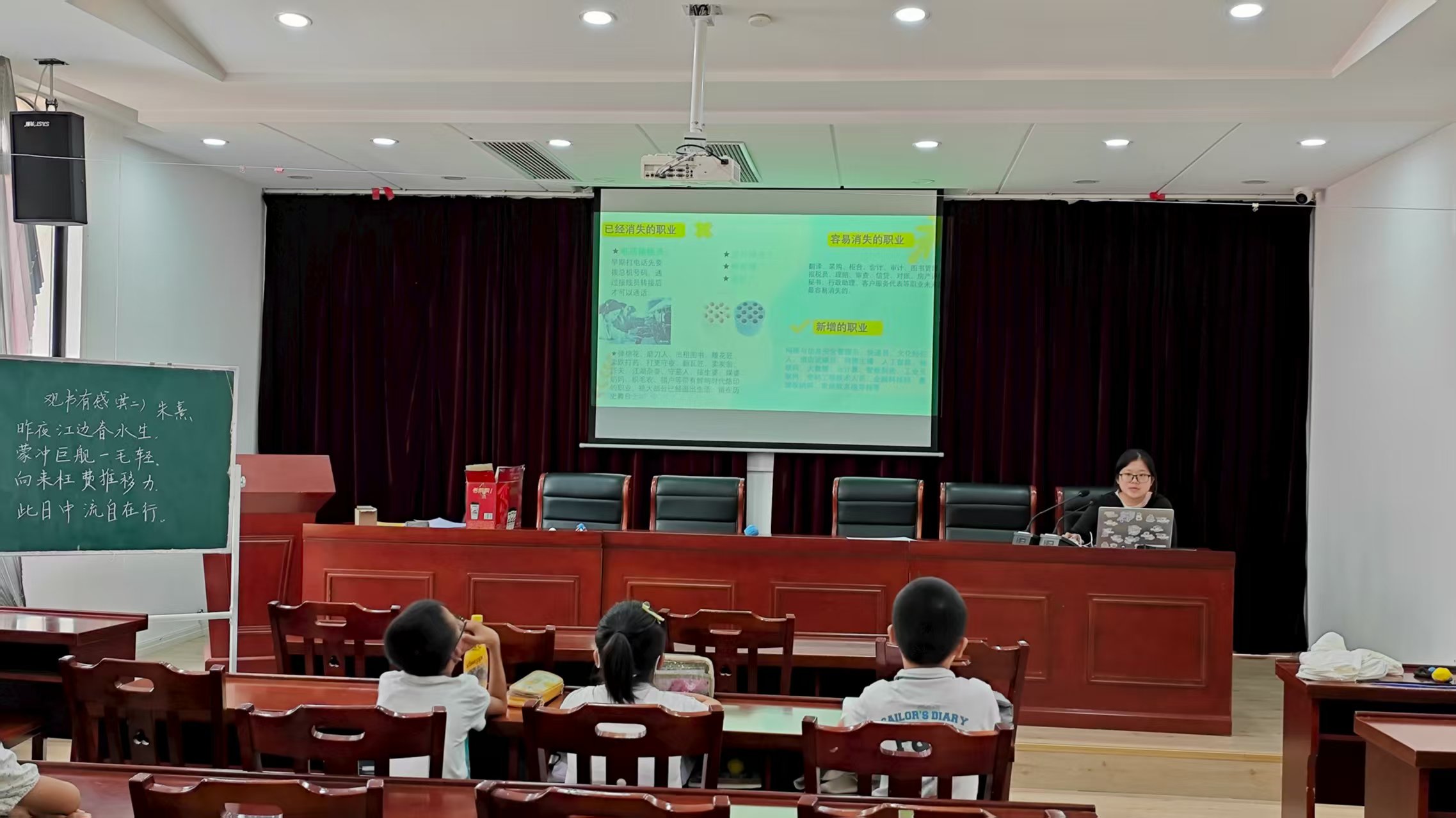 志愿者小老師為孩子們講解圖片進(jìn)行職業(yè)啟蒙,幫助孩子們建立對(duì)職業(yè)的初步認(rèn)識(shí),讓他們了解職業(yè)的內(nèi)涵。同時(shí)志愿者小老師就人工智能是否會(huì)取代人類(lèi)提出問(wèn)題,孩子們踴躍舉手,分享自己的看法。借助視頻讓孩子們了解人工智能的誕生及其快速普及是否會(huì)威脅到人類(lèi)。
