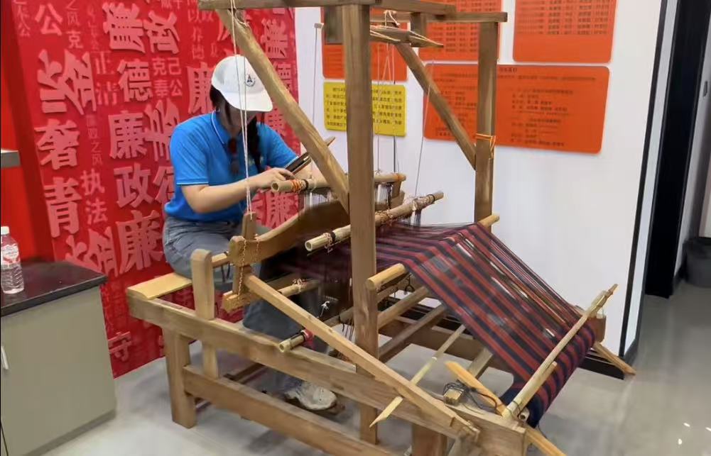 圖為調研隊員在村史館學習土家族傳統紡織技術 楊奕睿攝