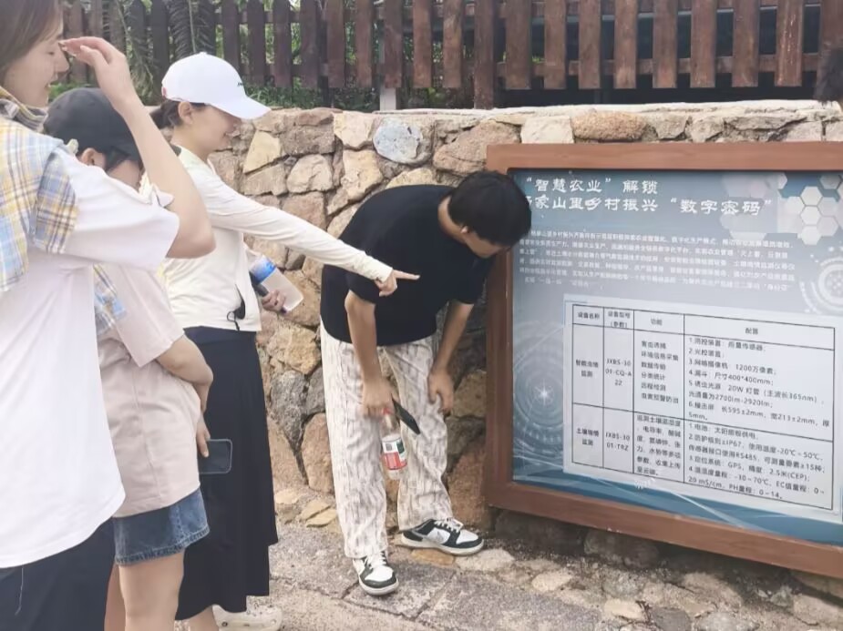 實踐隊成員首先來到楊家山里鄉村振興示范片區標識處,青山綠樹環繞之間,大家對即將開啟的調研充滿期待。隨后,隊員們在一處展示牌前駐足,仔細研讀“智慧農業”解鎖楊家山里鄉村振興“數字密碼”的相關內容,了解到當地借助現代化科技手段,對農業生產環境進行實時監測和精準調控,實現農業生產的高效與智能,深刻體會到科技為鄉村振興注入的強大動力。