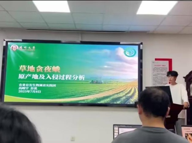 “農乃國之根本”是貫穿古今的治國要義,核心在于農業不僅是糧食供給的源頭,更是保障民生穩定、經濟發展、國家安全的戰略基石;鄉村振興戰略的號角已然吹響,在邁向農業強國的道路上,我們以汗水澆灌希望,以奮斗鑄就輝煌,讓農業更強、農村更美、農民更富。為保證農業正常發展,減小外來入侵害蟲對農作物的危害,揚州大學植物保護學院“農業有害生物調查實踐團”暑期三下鄉社會實踐團隊于7月1日開展了對農業害蟲——草地貪夜蛾的調研活動