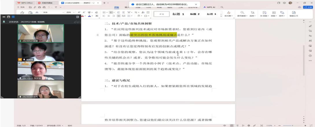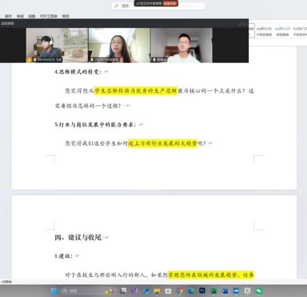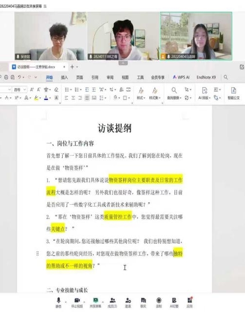 同時,學院協(xié)助實踐團隊與今世緣搭建高效溝通渠道,提前對接嘉賓崗位特性與時間安排,并結合三位從業(yè)者的領域調整提綱:生產崗側重“工藝標準化”“基層鍛煉模式”,研發(fā)崗聚焦“新酒飲市場數據”“技術創(chuàng)新方向”,質量管控崗圍繞“國標要求”“實操風險點”優(yōu)化問題,保障內容契合崗位實際。團隊提前做好騰訊會議測試、記錄分工、設備調試等準備,確保訪談順利進行。