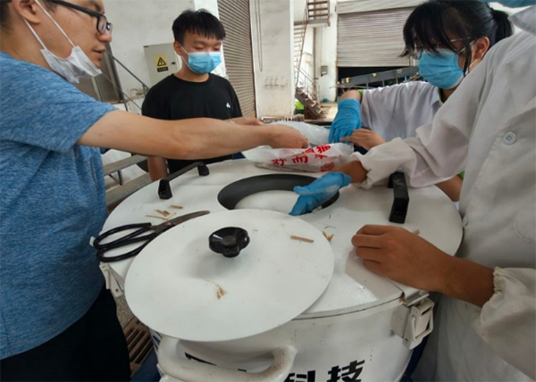圖:團隊成員使用攪拌機進行摻料