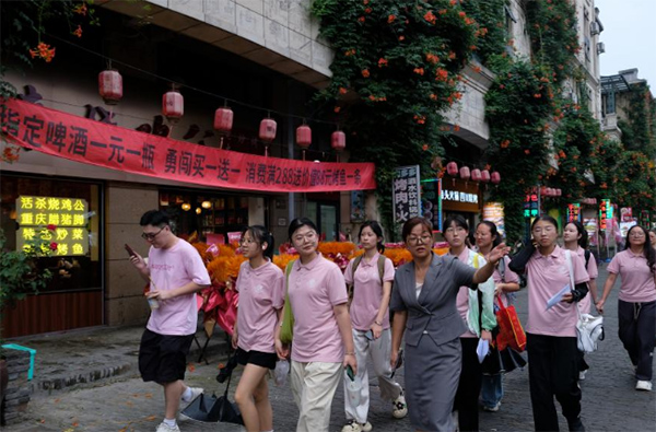 同時,市集深度整合非遺資源,推出手工DIY、扎染、瓷刻等體驗工坊,并開發“果香扎染”“柑橘紋刻”等本土化文創產品。每周小活動、每月大主題的節奏,吸引親子家庭與青年群體。“包餃子活動能學手藝,還能買農戶的菜!”游客李女士點贊。此外,市集設立大學生實踐基地,提供房租減免與創業輔導等相關政策支持,讓青年成為非遺傳承新力量。