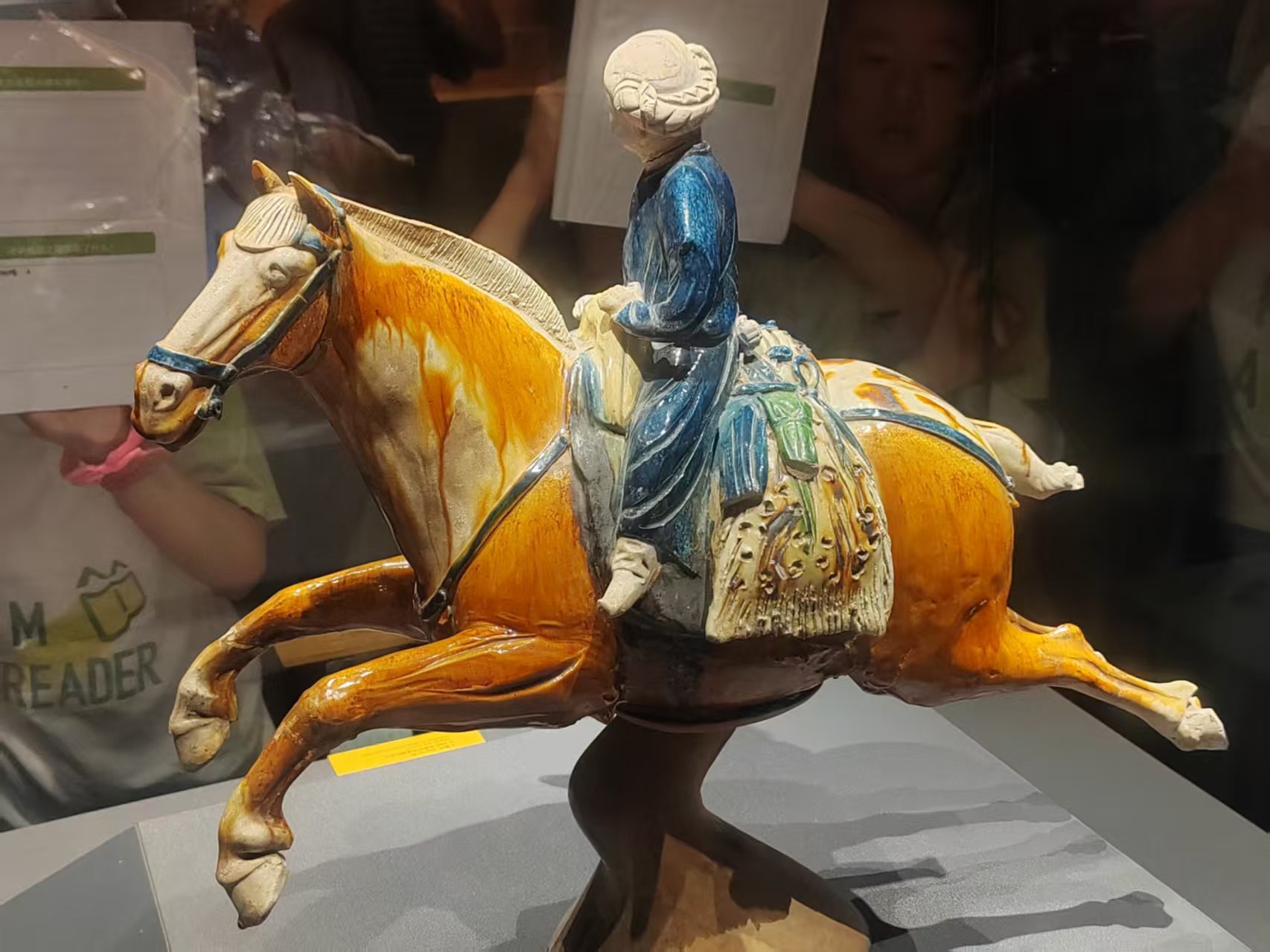 步入展廳,承載著千年時光的文物依次鋪展:唐代彩繪侍女俑發髻高挽、衣袂翩躚;《客使圖》壁畫上,各國使者神態各異;而造型獨特的唐三彩載樂駝俑,更是以駝背上樂手演奏的姿態,生動再現了唐代中外文化交融的場景,瞬間將隊員們帶入十三朝古都的時光長河。大家或掃描展柜二維碼聆聽沉浸式解說,或圍站在公益講解志愿者身旁認真學習,在“聽與思”的互動中,厘清文物背后的時代脈絡,深化對傳統文化的認知。