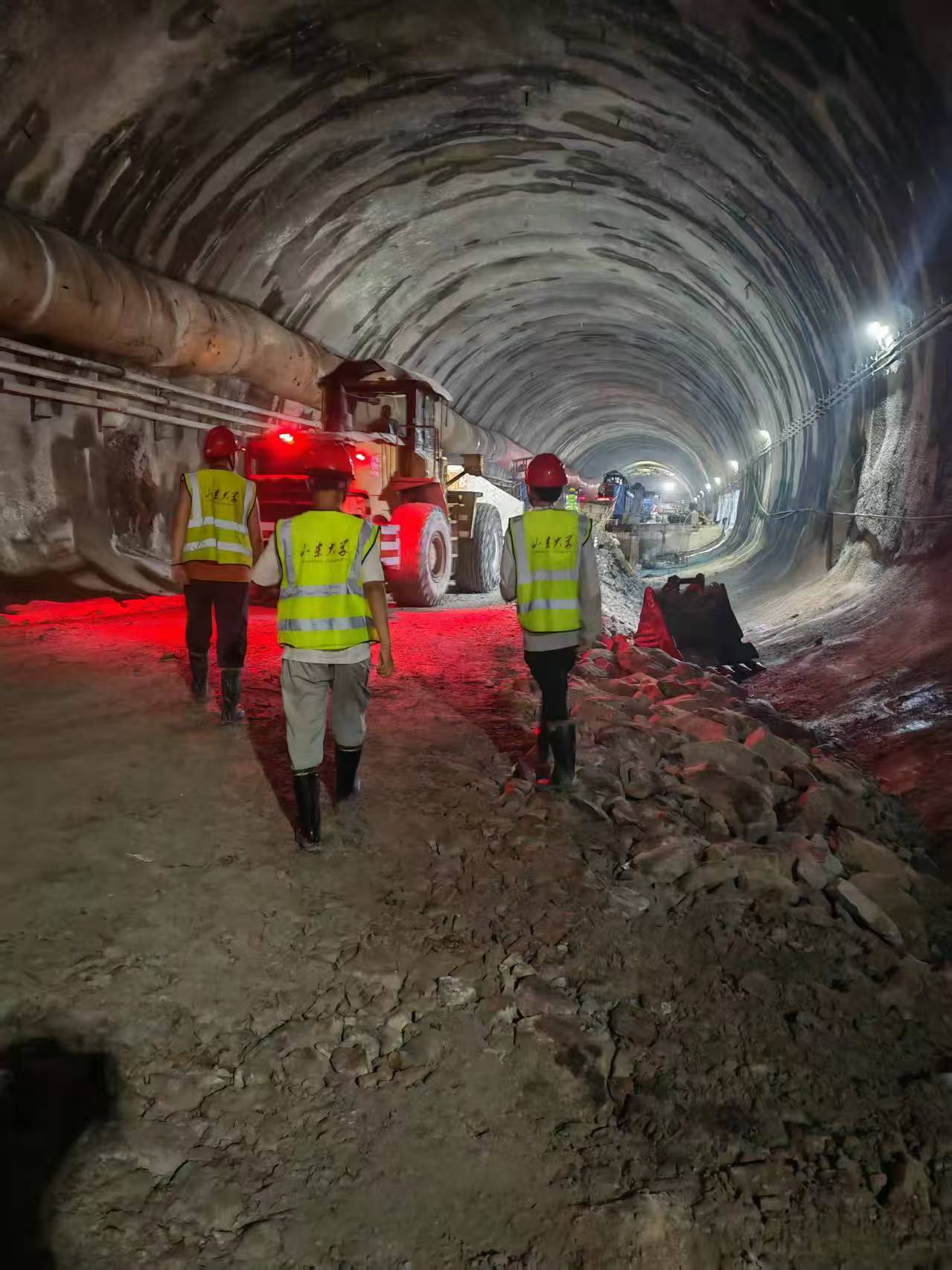 實習(xí)期間,在項目部工程師們的悉心指導(dǎo)下,六名團隊成員迅速了解了工程概況、超前地質(zhì)預(yù)報的原理方法、常用設(shè)備(如TSP、地質(zhì)雷達、超前鉆探等)的操作流程以及數(shù)據(jù)處理分析技術(shù)。他們不僅認真聆聽技術(shù)講座,積極參與方案討論,更在實踐中展現(xiàn)了山大學(xué)子嚴(yán)謹(jǐn)求實、勇于探索的精神風(fēng)貌。 尤為值得一提的是,在確保安全的前提下,團隊成員們克服了隧道內(nèi)潮濕、悶熱、噪音大等不利因素,嚴(yán)格按照項目部安排,輪流進入膠州灣第二海底隧道鉆爆區(qū)挖掘現(xiàn)場進行實地學(xué)習(xí)。深入掌子面,他們親眼目睹了現(xiàn)代化鉆爆設(shè)備的精準(zhǔn)作業(yè),親身感受了地下工程的宏偉與艱辛。在現(xiàn)場,工程師們結(jié)合實際工況,詳細講解了不同巖層的識別、斷層破碎帶的應(yīng)對策略、爆破參數(shù)的優(yōu)化以及實時監(jiān)測數(shù)據(jù)的解讀,讓同學(xué)們對課本上抽象的地質(zhì)構(gòu)造和施工工藝有了直觀而深刻的理解。“當(dāng)站在幾百米深的海底隧道掌子面,感受到巖石的堅硬和地下水的滲漏,才真正體會到‘紙上得來終覺淺,絕知此事要躬行’的含義。”團隊成員劉林達在實習(xí)日志中這樣寫道。