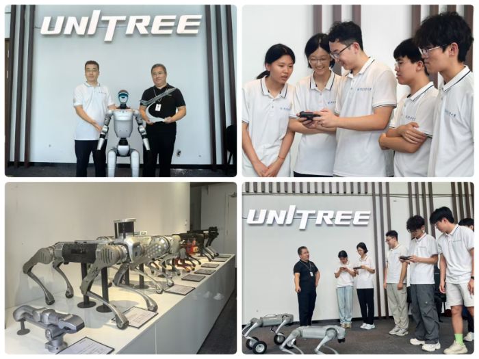 在宇樹科技,校園招聘總監亢志華向實踐隊員系統梳理了公司產品的迭代歷程;迎h節中,隊員們親自操控宇樹科技的機器狗,領略前沿成果魅力。隊員們還就技術細節與技術專家展開深入交流——從運動控制算法到信號傳輸實現,并針對網絡安全專業需求,探討了機器人技術在防護領域的應用前景。