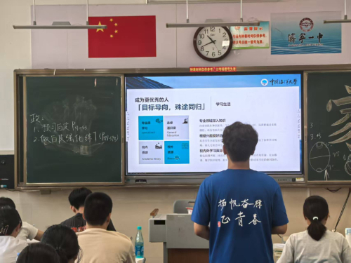 現場宣講大學概況與專業知識 8月20日,伴隨濟寧一中校園鈴聲,宣講正式開啟。考慮到宣講對象是文科班學子,實踐隊在內容呈現與形式設計上貼合其認知特點與興趣點,以“學校推介+專業解讀+生涯指導+互動答疑”四維模式,帶來干貨滿滿、生動有趣的升學規劃課。
