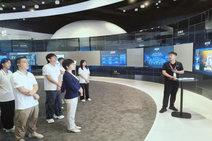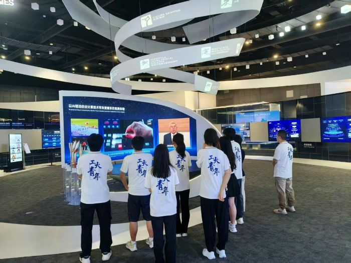 進入阿里云園區后,講解員帶領實踐隊參觀了阿里云展廳,介紹了阿里云的企業文化和發展歷程。跟隨講解員的腳步,同學們了解了阿里云以“全面擁抱AI”為特色的一系列服務產品和以“云計算推動科技創新”為指引的關鍵技術突破,并親身感受了阿里云以AI驅動的云計算技術給生活帶來的便捷。