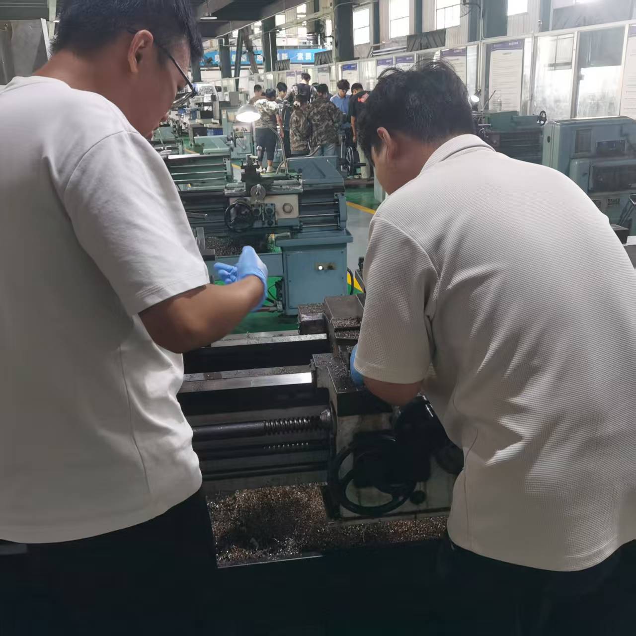 最后,隊伍走進齊魯工業大學(山東省科學院),聚焦其與中國航發中傳機械有限公司合作的“機加工藝虛擬驗證系統”項目,以“電腦仿真與機床加工實際驗證結合”為核心展開研學。在實驗室,科研人員先向隊員們演示了系統的虛擬仿真環節:在電腦上輸入航空零部件的三維模型與銑削工藝參數后,屏幕實時呈現刀具路徑、材料去除過程及加工誤差預測,生成一份完整的“虛擬加工報告”。緊接著,隊員們跟隨科研人員來到配套的實訓車間,親眼見證仿真結果的實際驗證——技術人員按照虛擬報告中的參數,在機床上裝夾工件、調試設備,啟動加工流程。待工件加工完成后,隊員們協助測量工件尺寸,并將實際誤差數據與電腦仿真預測結果逐一對比。隊員馬同學拿著測量工具,直觀感受到虛擬仿真與實際加工的銜接邏輯。交流中,科學院的李老師解釋:“這套系統的核心就是‘先仿真、再驗證、后優化’,通過實際加工數據反哺仿真模型,讓理論設計更貼合生產實際。”隊員們還親手嘗試在系統中調整工藝參數,觀察仿真結果變化,再對照對應的歷史實際加工案例,逐步理解“虛擬仿真如何指導實際生產、實際加工如何修正理論模型”的閉環邏輯,為后續接觸機械制造工藝設計、參與類似“仿真-驗證”項目積累了基礎認知。