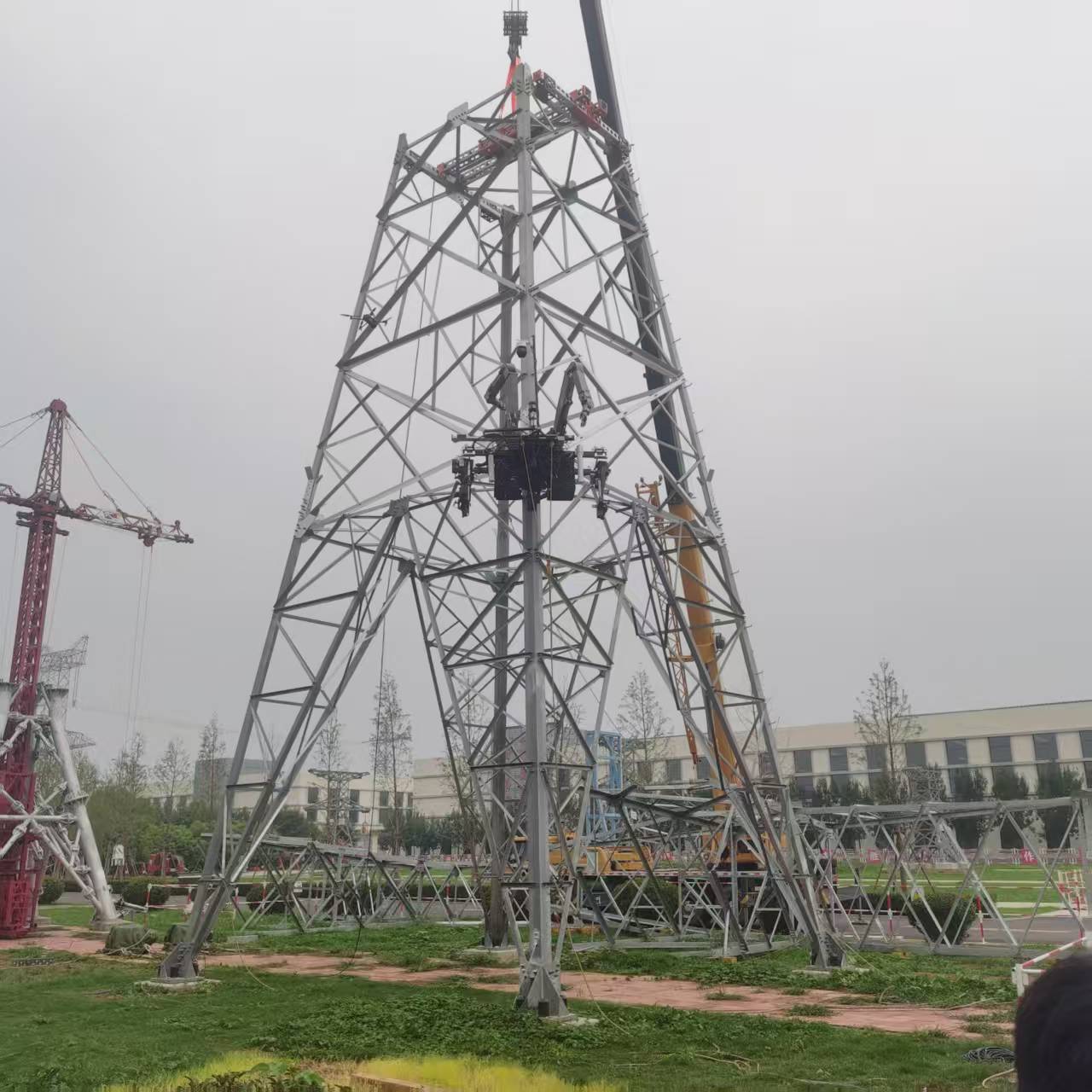 隨后,青鋒研行隊來到山東電網電力工匠學院,圍繞國網山東省電力公司科技項目“輸電鐵塔組立高處作業機械化施工關鍵技術及裝備研制應用”深入學習。在模擬實訓場地,隊員們現場觀摩了項目研發的智能抱桿、自動螺栓緊固設備的實操演示:裝備通過伸縮臂調整、夾持機構固定,精準完成鐵塔構件的起吊與對位,全程無需人工高空作業。“傳統人工組立鐵塔,不僅效率低,還存在墜落風險,這個項目的裝備正好解決了行業痛點。”國家電網技術人員的講解讓隊員們快速把握項目核心價值。隊員們還就裝備的機械結構設計、遠程操控原理與技術人員交流,了解裝備在復雜地形、強風環境下的適應性改進,記錄下裝備研發“從現場需求出發”的關鍵思路,為后續接觸電力機械相關項目積累了實踐認知。