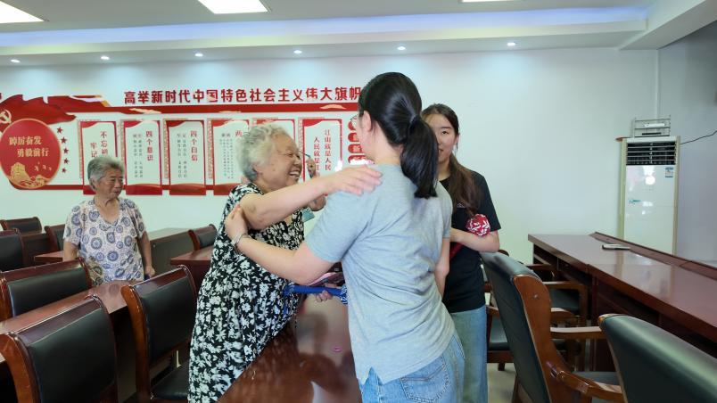 實踐首站,團隊扎根全國示范性老年友好型社區——阜寧縣林海社區。基于前期與社區書記李愛娟的深入交流及扎實調研,針對社區老年群體突出的健康養生需求,精心策劃了“艾草養生錘”非遺手工藝公益課堂。此外,團隊還細致探訪了長者食堂、阜寧一縷陽光志愿者協會等場所,為后續長期化、精準化的藝術服務奠定堅實基礎。