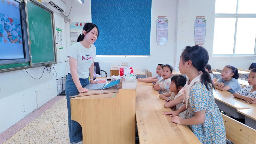 在阜寧縣羊寨鎮中心小學,團隊以“紅色傳承”與“非遺新生”為雙翼,打造沉浸式美育課堂。“訪紅色記憶,繪心中英雄”主題繪畫課上,成員們引導孩子們執起畫筆,將厚重的革命歷史化作筆尖可觸可感的英雄形象,讓紅色基因在童真繪作中悄然扎根。緊隨其后的“非遺剪紙:指尖傳承文化記憶”課程,則巧妙結合鹽城岡西剪紙特色,探索“藝術+科技”活態教學,使古老技藝在數字賦能中煥發新趣。