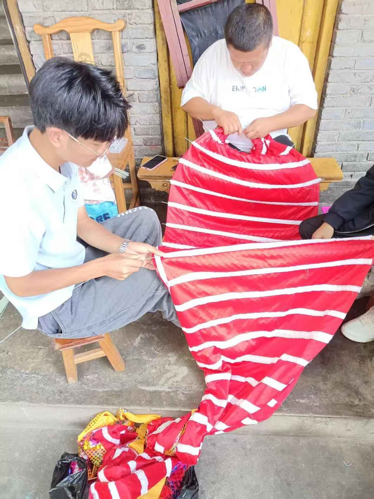 同學們正在跟隨傳承人學習龍體基本制作手法