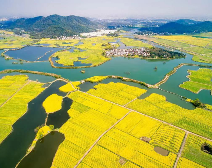 生態打底,讓鄉村留住本色。航拍視角下的龜山村,形似一只靜臥水面的靈龜,被泊口河溫柔環抱,青山碧水與綠野金花構成天然畫卷。村莊秉持“綠水青山就是金山銀山”理念,在環境整治中注重保留鄉土韻味,不僅完成了全村道路的硬化綠化,更精心打造了鵝卵石環村步道。村邊坡地的杉木與松林中,成群鷺鳥在此筑巢棲息,與錯落有致的民宿相映成趣,推開民宿窗戶便能望見響水澗開闊的水面與彩色農田,盡顯“水上浮村”的田園詩意。如今的龜山村,春有油菜花海,冬有雪景如畫,四季皆景的生態優勢正轉化為發展優勢。