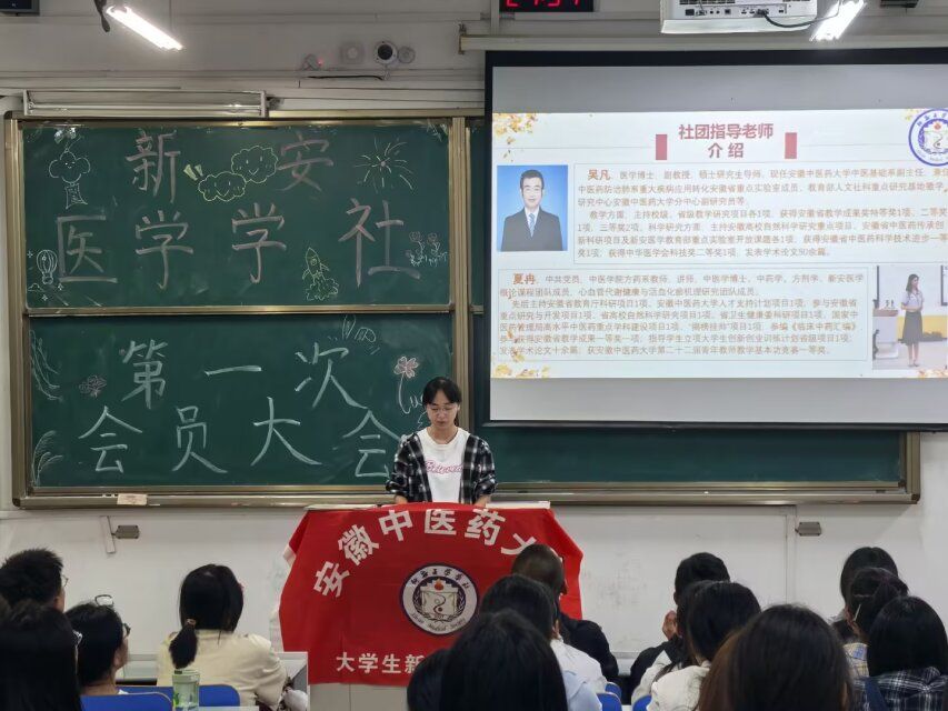 2025年10月10日,安徽中醫(yī)藥大學(xué)大學(xué)生新安醫(yī)學(xué)學(xué)社第一次會員大會在A101教室成功舉行。全校各院系的百余名社員齊聚于此,共同見證學(xué)社發(fā)展的關(guān)鍵開端,為傳承新安醫(yī)學(xué)文化、弘揚中醫(yī)藥核心精神匯聚青春力量。