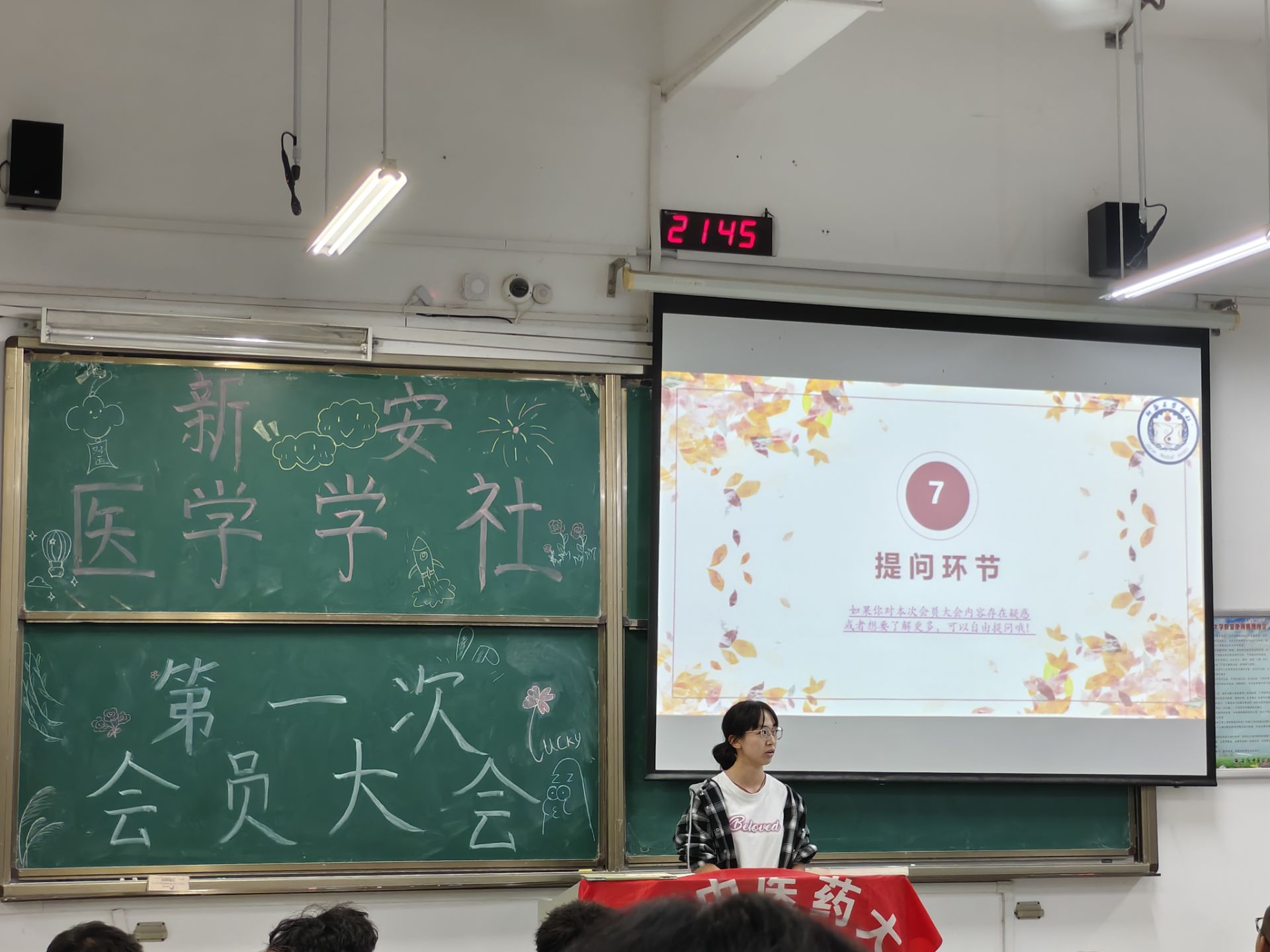 隨后,大會逐一介紹了本學(xué)期的重點大型活動,包括新安醫(yī)學(xué)知識講座、新安醫(yī)學(xué)論壇、“神奇中醫(yī)”體驗之旅、杏林小培訓(xùn)等,并就各項活動的舉辦時間、地點、參與人數(shù)限制及核心目的進(jìn)行了詳細(xì)說明。這些活動不僅為同學(xué)們搭建了專業(yè)學(xué)習(xí)與實踐鍛煉的平臺,更將助力學(xué)校打造新安醫(yī)學(xué)傳承與創(chuàng)新的特色品牌。大會同時呼吁學(xué)社成員共同做好規(guī)范管理、豐富活動形式,吸引更多學(xué)子參與到中醫(yī)藥文化傳承的隊伍中。
